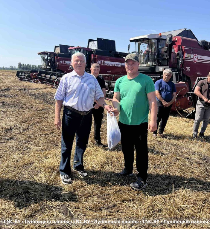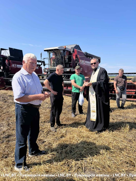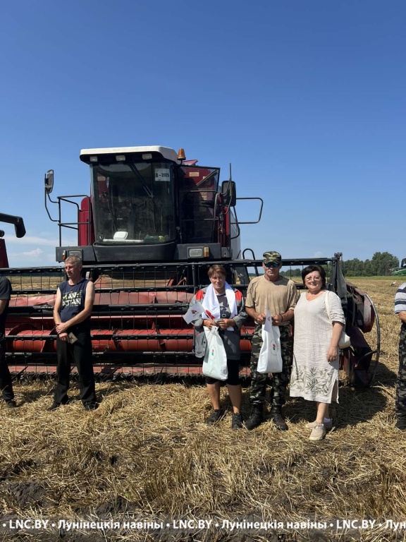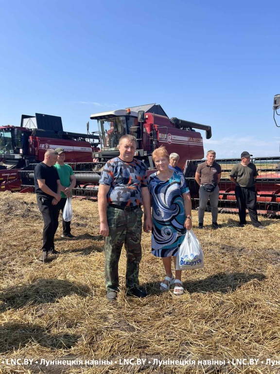 Для мотивации и повышения производительности труда хлеборобов специалисты ГУ «Лунинецкий ТЦСОН», представители совета старейшин, протоиерей Лунинецкого благочиния Сергий Чиж и председатель РОО «Белая Русь» Раиса Мозырчук выехали на поля ОАО «Дворецкий», чтобы выразить заслуженные слова благодарности и вручить подарки комбайнерам Николаю Песоцкому и Владимиру Грицкевичу, семейному экипажу Николаю Субочу и Ольге Бусько.