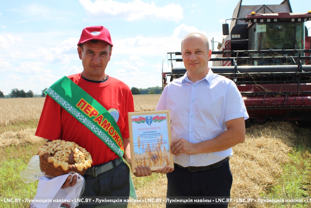 Победитель жатвы получил подарки и поздравления от председателя районного исполнительного комитета Александра Савины и его первого заместителя, начальника управления по сельскому хозяйству и продовольствию Ивана Грицкевича, а также лидеров: депутатского корпуса района – Владимира Ковалевича и райкома профсоюза работников АПК – Ольги Ермоленок.