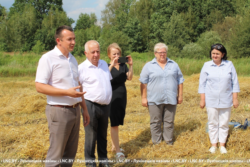Первый заместитель председателя райисполкома, начальник управления по сельскому хозяйству и продовольствию Иван Грицкевич и лидер райкома профсоюза работников АПК Ольга Ермоленок побывали на жатве в КСУП «Хвоецкое».