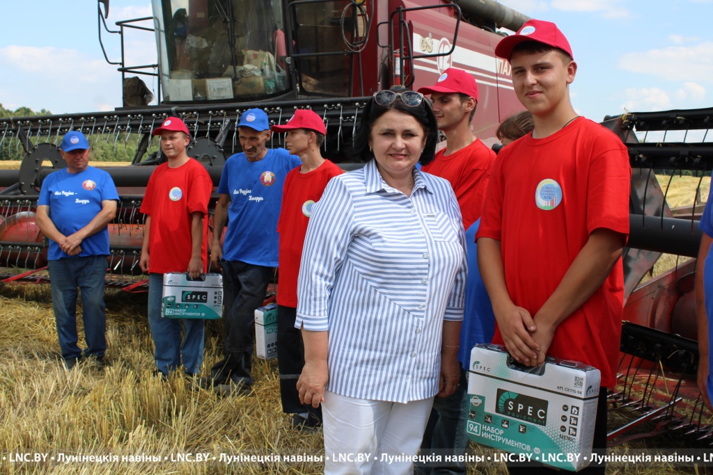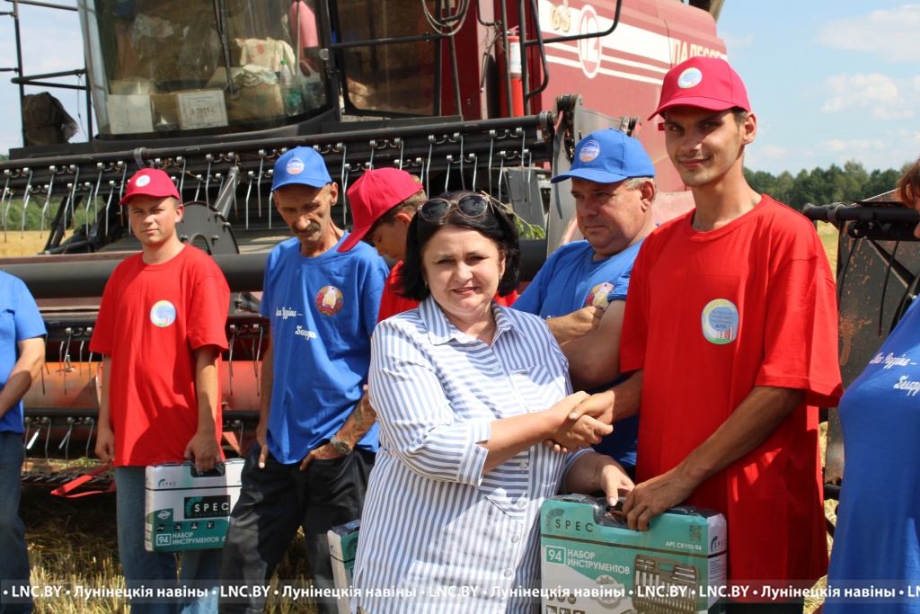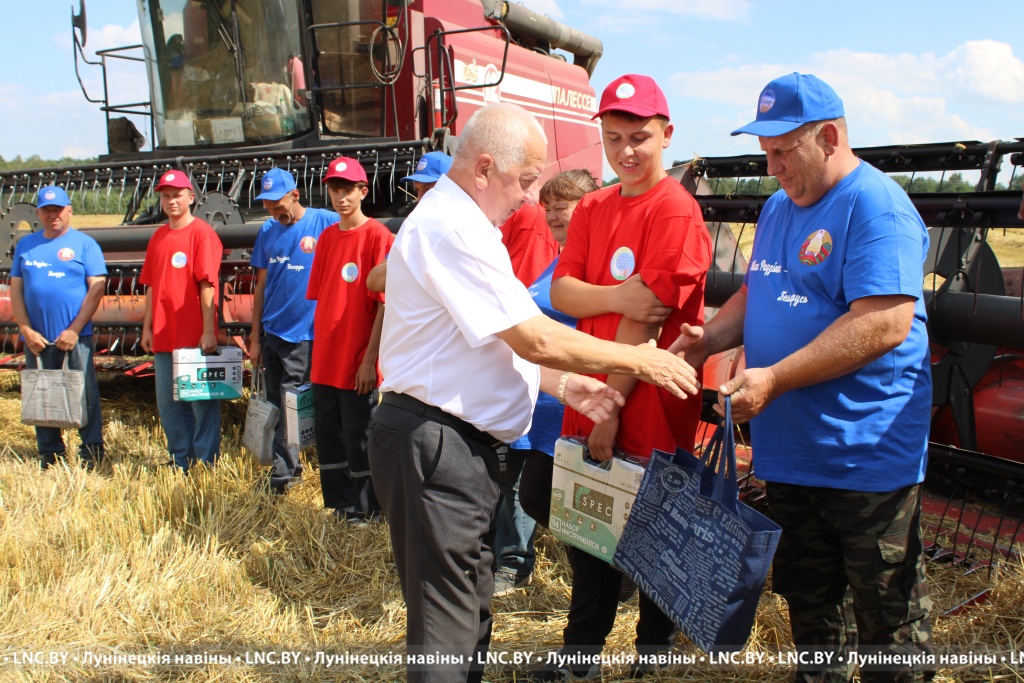 Целью поездки было поддержать хлеборобов в ответственный период уборочной кампании и вручить им подарки. В мероприятии также приняло участие руководство хозяйства во главе с директором Василием Лозицким.