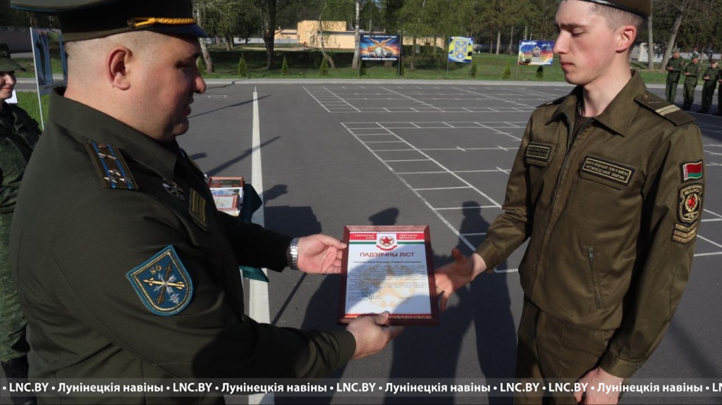 Командир полка полковник Василий Костеж поблагодарил сержантов и солдат за службу, а также вручил наиболее отличившимся почетные грамоты, благодарственные письма, мерч от Первого и фотографии около развернутого Боевого Знамени полка.
