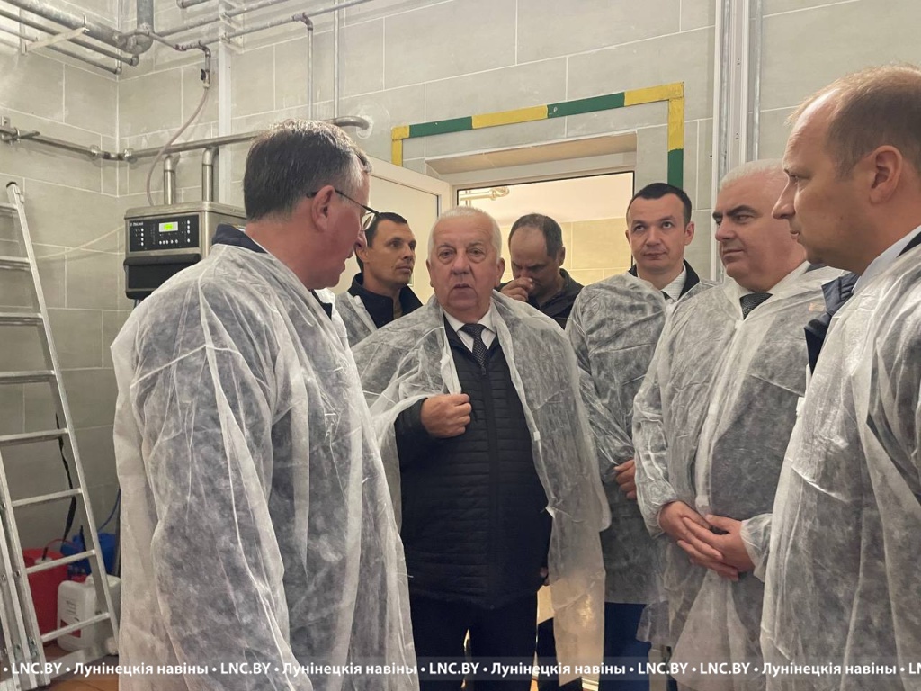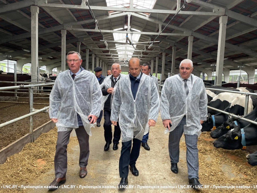 Экскурсию по обновленному комплексу провел руководитель хозяйства Василий Лозицкий. В ходе осмотра объекта Дмитрий Городецкий обсудил с председателем Лунинецкого райисполкома Александром Савиной перспективы развития животноводства в регионе.