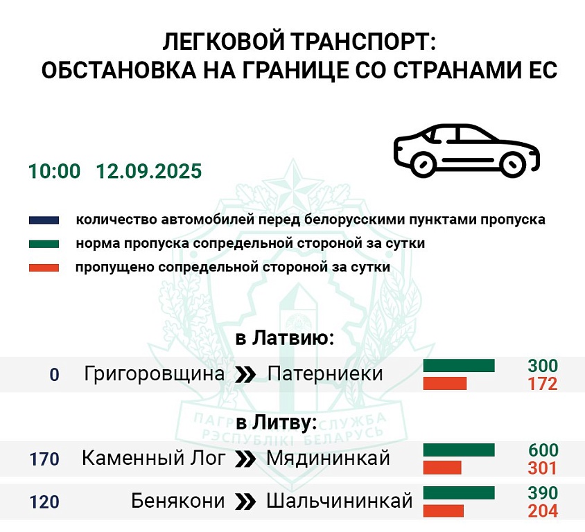 Очереди легкового транспорта фиксируются только перед литовскими пунктами пропуска - 290 автомобилей. Сопредельная сторона за 24 часа приняла из Беларуси 51% легковушек от нормы.