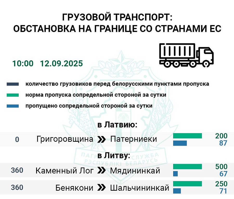 Въезда на литовскую территорию перед двумя действующими погранпереходами - "Мядининкай" ("Каменный Лог") и "Шальчининкай" ("Бенякони") - ожидают 720 фур. Контрольные службы Литвы за сутки оформили 13% и 28% большегрузов от нормы соответственно.