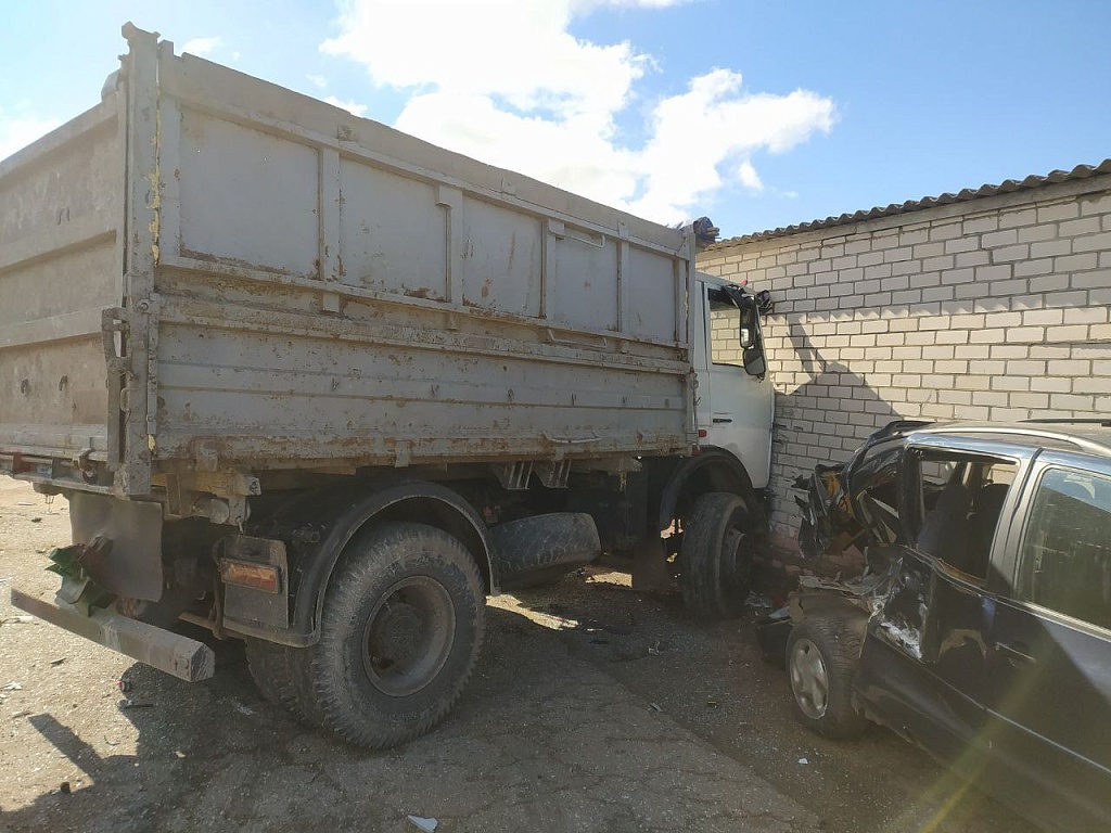 В результате столкновения водитель автомобиля ГАЗ погиб на месте ДТП. Водитель автомобиля МАЗ повредил два автомобиля, стоящих на парковке и стену здания.
