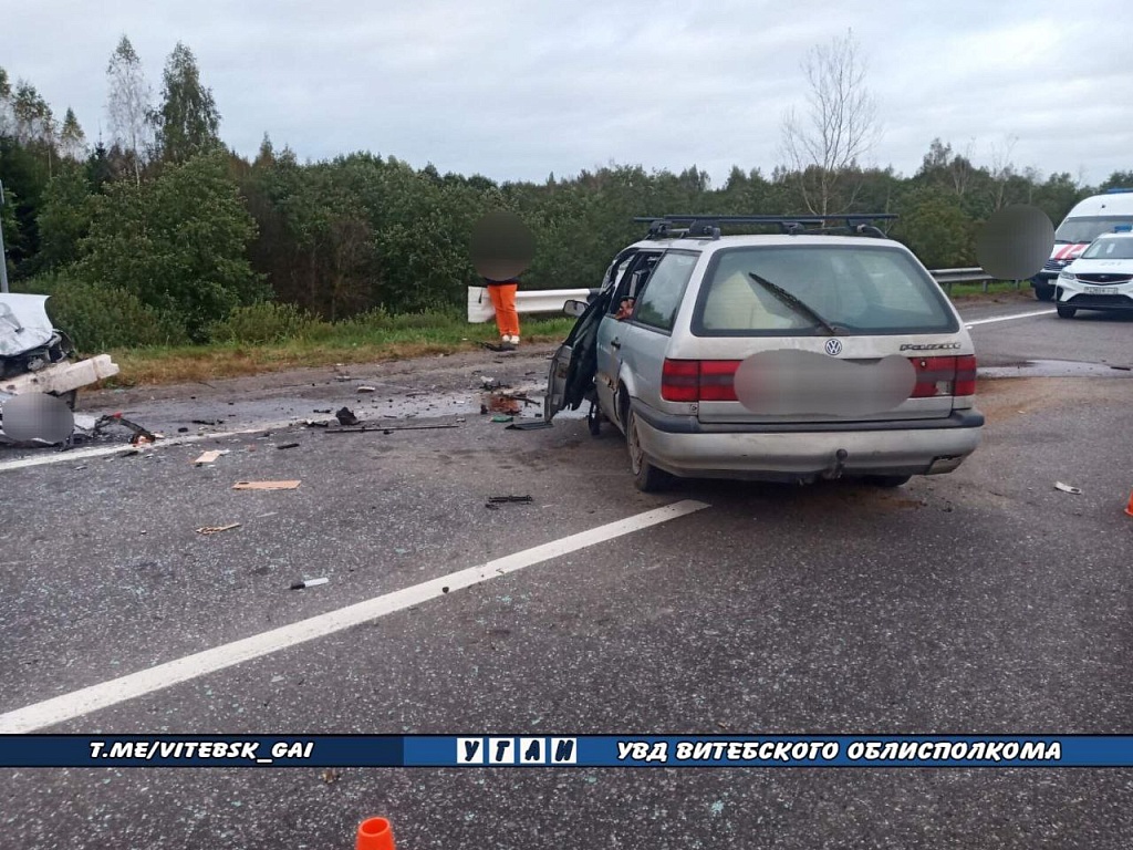47-летний водитель автомобиля Volkswagen Passat, двигаясь в направлении г. Полоцка, выехал на полосу встречного движения, где совершил столкновение с двигавшимся во встречном направлении автомобилем Kia Rio.