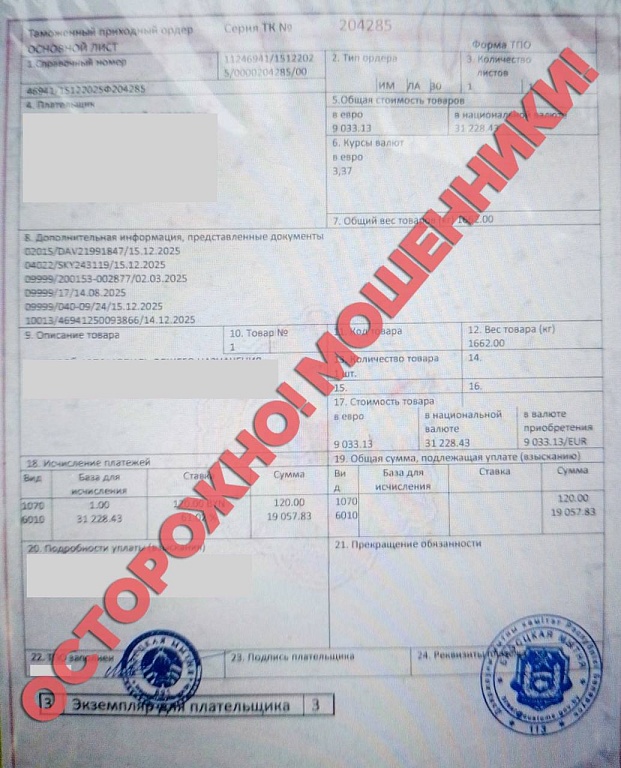 Также женщина из Иркутска просила узнать, проходил ли платеж в размере порядка 27 тыс. бел. рублей по квитанции, в которой получателем указан «Брестский таможенный пост». А мужчина из Краснодарского края уточнял, действительно ли растамаживался автомобиль, направив таможенный приходной ордер с печатью якобы Брестской таможни.